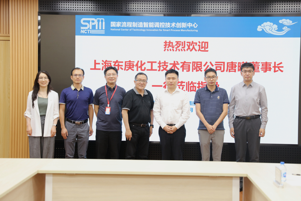 7月19日下午,上海东庚化工技术有限公司(以下简称“东庚化工”)董事长唐曦一行到访国家流程制造智能调控技术创新中心(以下简称“国创中心”),与国创中心副主任、华东理工大学教授冯恩波等就数字化转型、智能工厂建设等合作事宜进行讨论。
